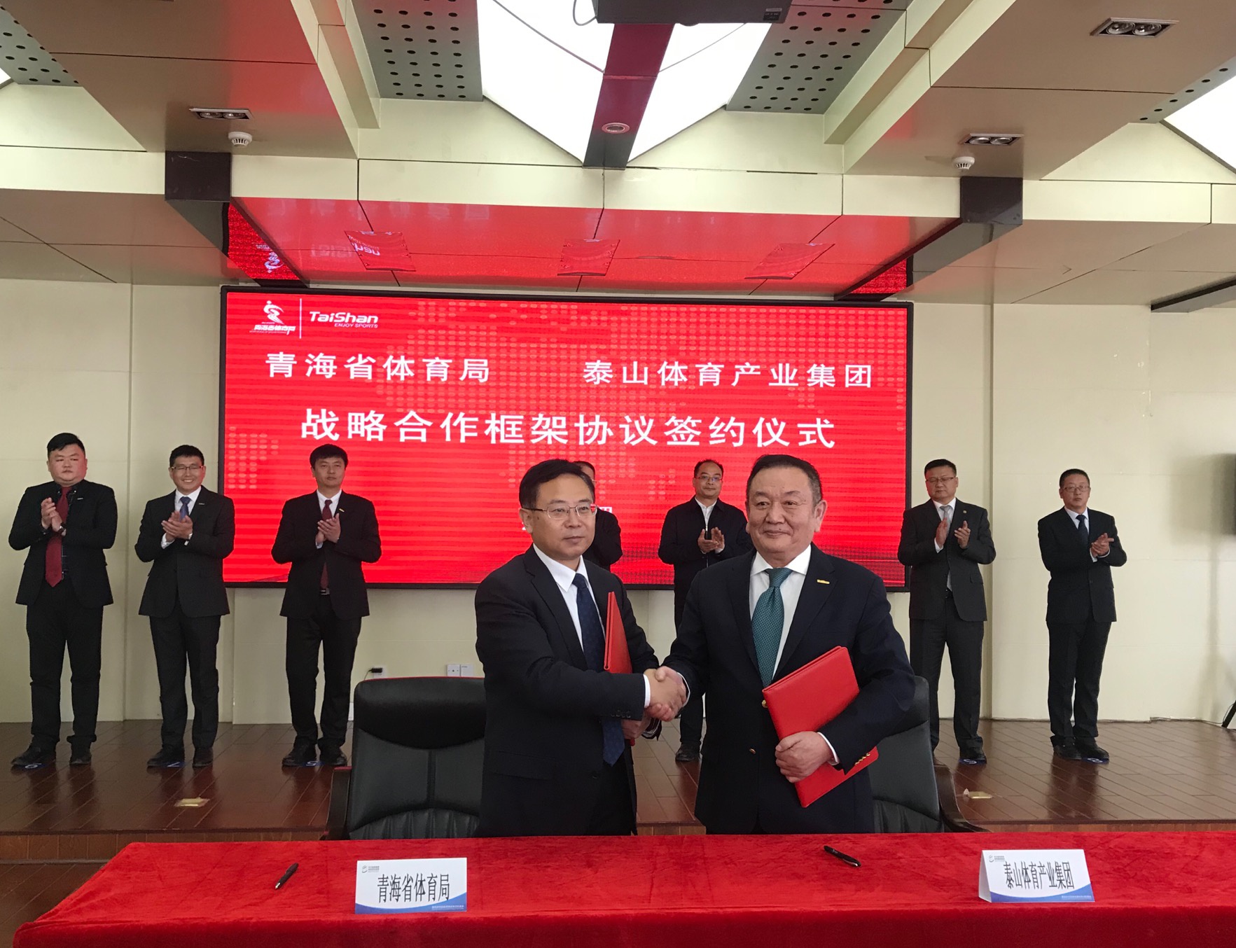 12月5日,泰山体育产业集团与青海省体育局在青海省多巴国家高原体育训练基地举行签约仪式,正式宣布达成全面战略合作。立足“环青海湖国际公路自行车赛”和全民健身的合作基础,充分发挥双方优势资源,建立长期稳定全面战略合作关系,共同推进体育赛事、全民健身、竞技体育、体育产业、体育科研以及体育基础设施建设的发展,特别是针对青海省品牌赛事等方面,双方将展开全方位的合作。通过合作,努力开创青海省体育产业高质量发展的全新局面,推动体育强国和健康中国建设。