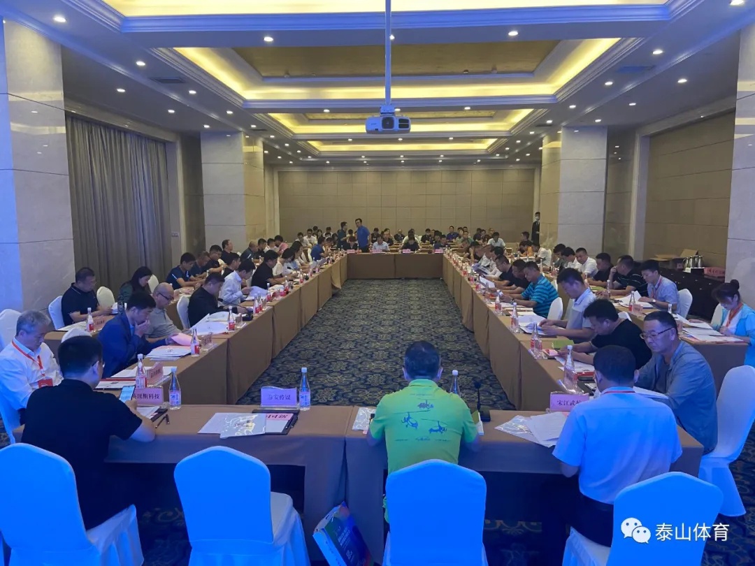 2020年8月21日,作为首届山东(临沂)体育用品博览会议程的重要环节,山东省体育产业联合会筹备会议在临沂市隆重召开。山东省工业和信息化厅轻纺处处长管晓艳、山东省体育局产业发展服务中心主任翟培建、省工业和信息化厅轻纺处四级调研员纪建富、省体育产业发展服务中心副主任李鹏、山东大学体育学院副院长王飞、恒丰银行股份有限公司副行长沈健、中国农业银行股份有限公司德州分行副行长郭延超等领导及来自山东各地的近百家企业负责人出席会议。会议由省体育产业发展服务中心副主任王见彬主持。泰山集团常务副总裁卞国峰出席会议并发表讲话。