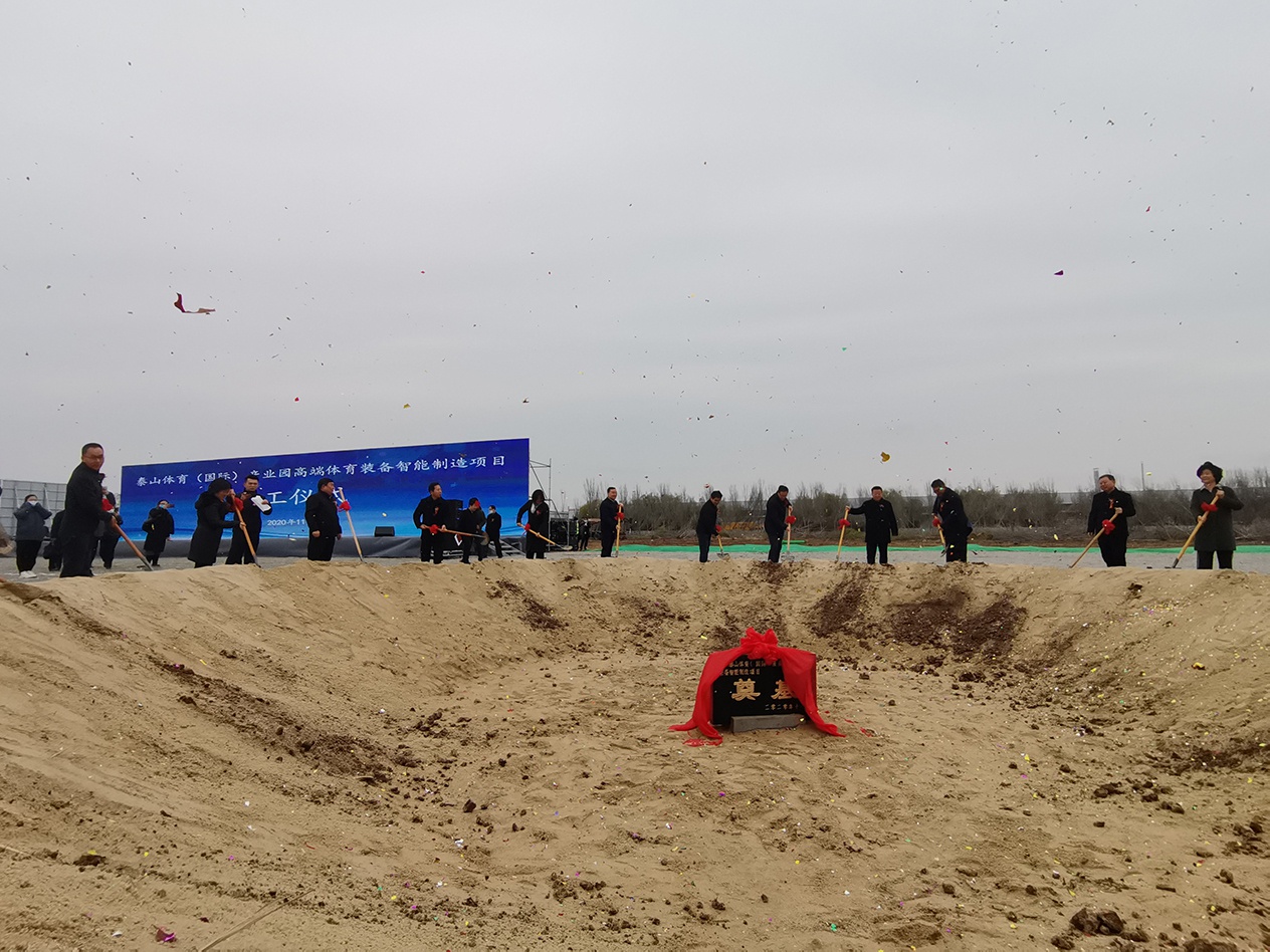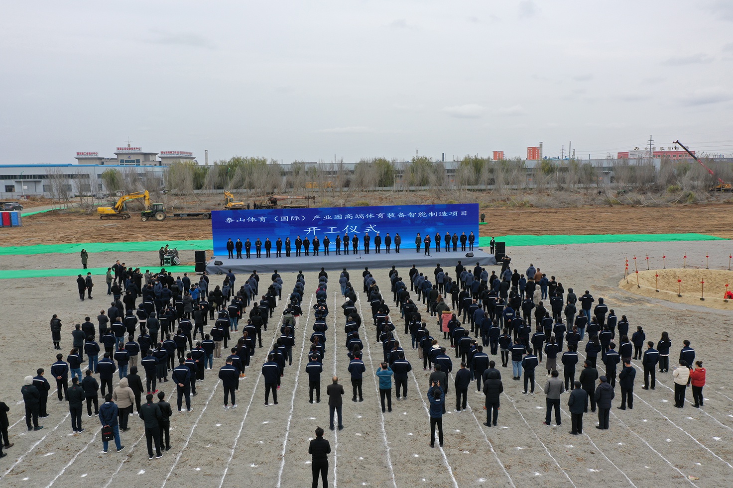 为坚定不移走制造强国、质量强国、网络强国、数字中国路线,推进体育产业基础高级化、产业链现代化,提高品牌核心竞争力,响应“健康中国”“体育强国”国家战略号召,积极落实山东省委省政府做大做强民族体育品牌的指示,为发展体育产业聚势赋能,11月26日,泰山体育(国际)产业园高端体育装备智能制造项目开工仪式在泰山集团举行。中国体育用品业联合会主席李桦、山东省体育局副局长王延奎、山东省工信厅二级巡视员李向东、中国农业银行山东省分行副巡视员宋红光、山东大学体育学院党委常务副书记郭学庆、德州市政协主席翟长生、德州市政协秘书长魏增新、中国农业银行德州分行行长田树江,德州市及乐陵市有关部门主要负责同志出席仪式。乐陵市委书记樊廷雷主持开工仪式并发表致辞。