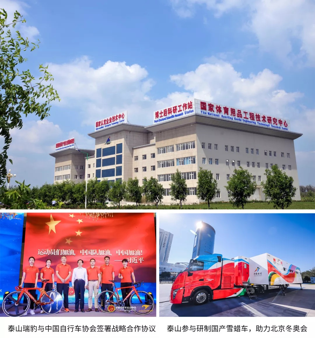 泰山体育产业集团有限公司创建于1978年,历经40余年创新发展,成为制定国际标准的世界知名品牌和全球顶级赛事供应商、服务商。产品主要涉及高端体育器材、新材料人造草坪、碳纤维自行车、智能冰雪装备、智慧健身装备及体育工程、健身俱乐部,校园体教装备等多个领域。在上海、深圳设有研发中心,在北京、济南、西安、成都、青岛、深圳等地,以及美国、日本等设有分公司。泰山体育作为世界体育大会、国际大体联两大组织全球的顶级战略合作伙伴,先后出色服务5届奥运会、3届青奥会、6届世界大学生运动会、6届亚运会、9届全运会以及1000多次世界单项锦标赛和国内外大型体育赛事。泰山参与研制的“国内首创、世界领先、完全国产 ”雪蜡车还将服务2022年北京冬奥会,助力中国运动健儿取得优异成绩。