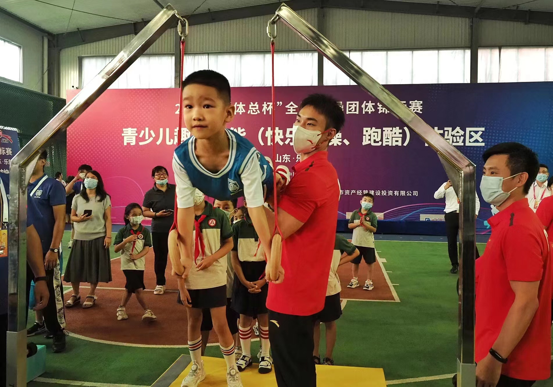 “非常好,你要把腰挺起来!”“很棒,姿势保持住!”在泰山体育青少儿趣味体能(快乐体操、跑酷)体验区,国家队运动员正在手把手地为小学生们指导正确的体操训练动作。这温馨又欢乐的一幕,把大家从波澜壮阔的体育发展史中唤醒,纷纷沉浸在了活力满满的互动中。