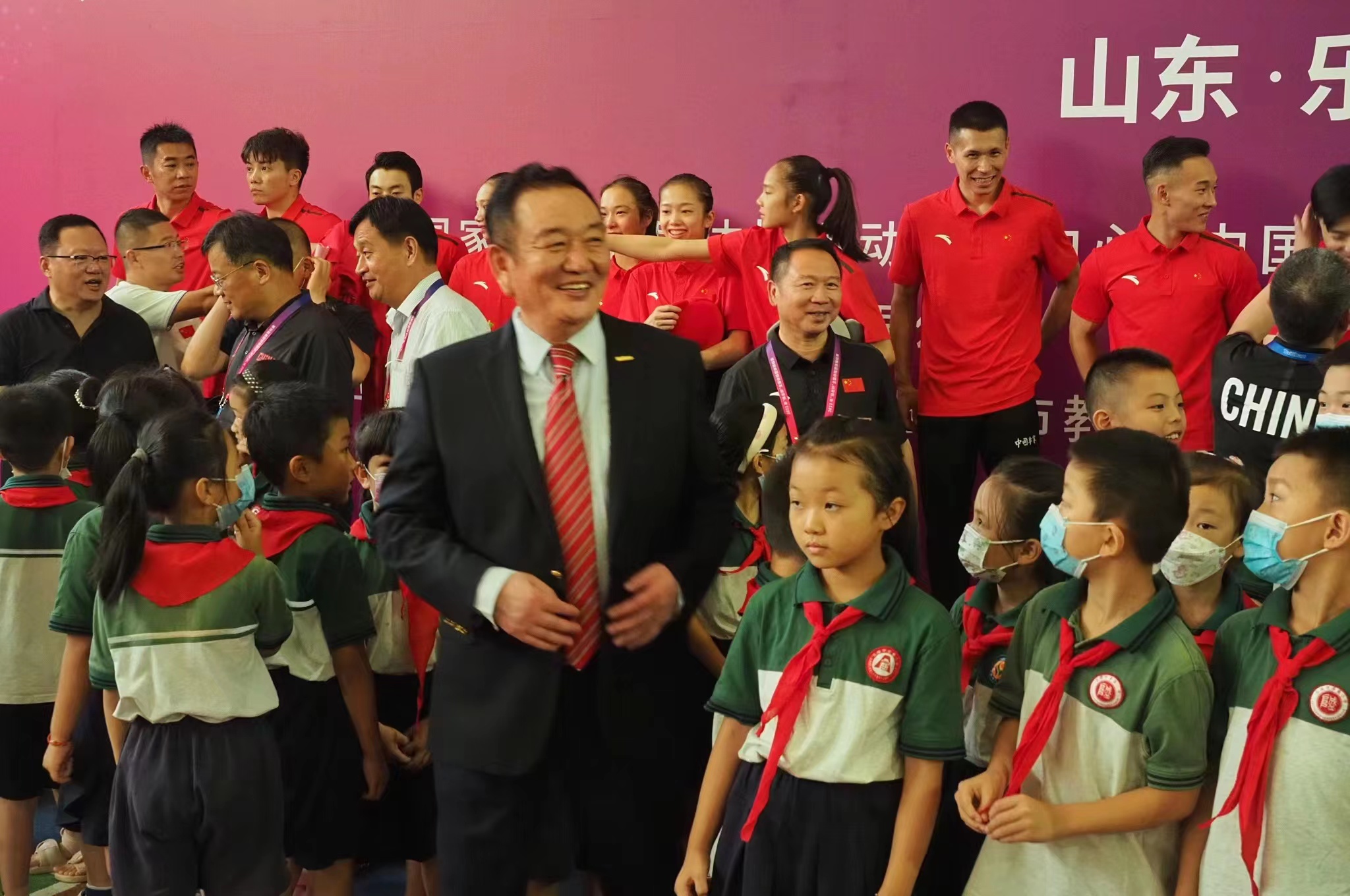8月7日下午,国家体操队来到了乐陵泰山体育产业集团厂区,开展送体育下乡活动,让体操运动走基层、进企业、入校园。国家体育总局体操运动管理中心主任缪仲一、国家体育总局体操运动管理中心副主任叶振南、国家体育总局体操运动管理中心副主任冯玉娟、山东省体操运动管理中心主任郝丕彪、乐陵市委书记王晓勇、乐陵市委副书记车志刚、乐陵市副市长张磊、乐陵市教育和体育局局长温海东、泰山体育产业集团有限公司董事会主席卞志良、泰山体育产业集团有限公司董事长卞青峰、泰山体育产业集团有限公司总裁卞笑男、泰山文旅(北京)产业有限公司总经理崔刚参加。