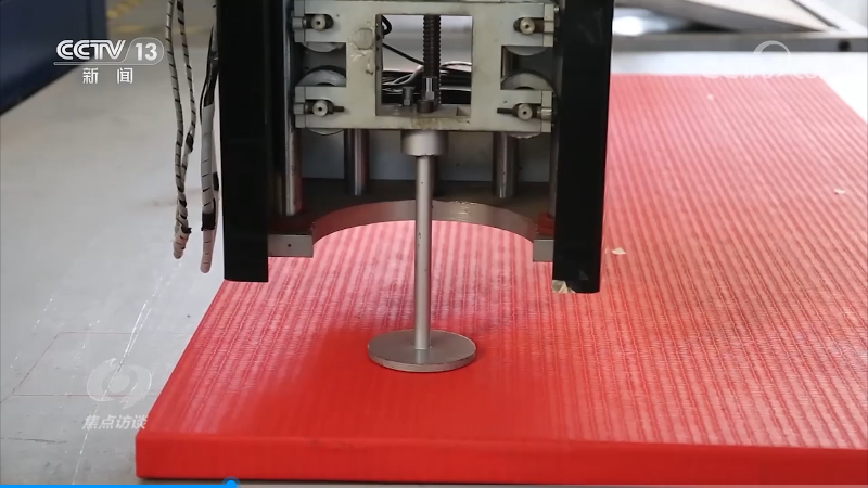 泰山体育产业集团董事会主席 卞志良:以前国际标准极限拉力都是4000牛顿以上,我们现在能达到14000牛顿,这对安全性(有提升),多少次都不会断裂,也不会变形,原因是强度加大了。