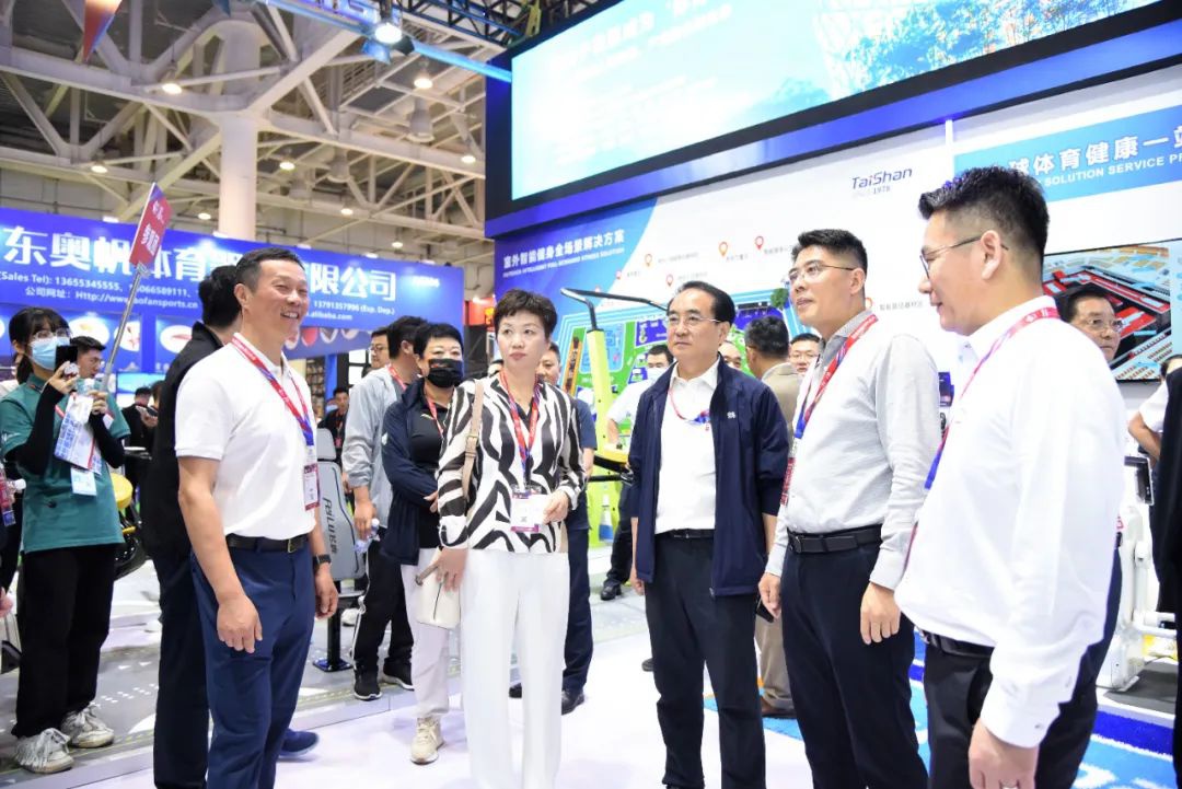 本届体博会以贯彻落实党的二十大精神和建设体育强国的为发展新要求,面对体育产业新起点及新发展格局,泰山体育适应体育产业发展新动态,为场内外观众及客户精准解读体育发展面临的新形势和新发展理念。前来参观的各级领导和社会各界群众络绎不绝,展馆内挤满了前来洽谈业务的中外客商。