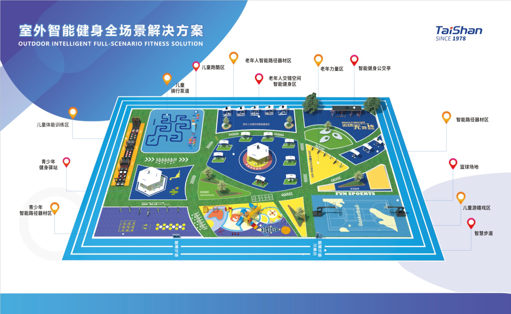 为贯彻落实党中央、国务院《关于构建更高水平的全民健身公共服务体系的意见》,推动全民健身与全民健康深度融合,泰山体育依托全球首创AI智能体质检测一体机、儿童体适能健身器材,以及最新推出的老年以及青少年健身器材等产品,结合新一代智慧体育“互联网+科学健身”应用场景,为全年龄段运动人群提供更多科学健身指导。