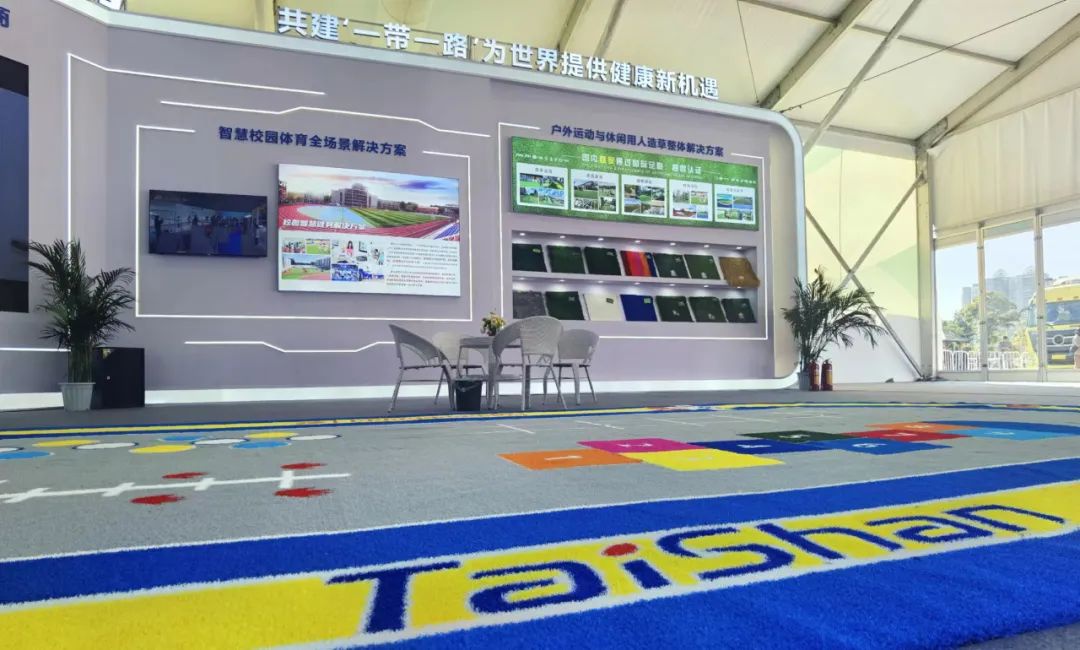 泰山体育携户外运动与休闲人造草整体解决方案亮相会场。作为国内首家通过足联、曲联双认证的企业可根据不同用户的户外运动需求,生产多种类型的户外运动草坪。