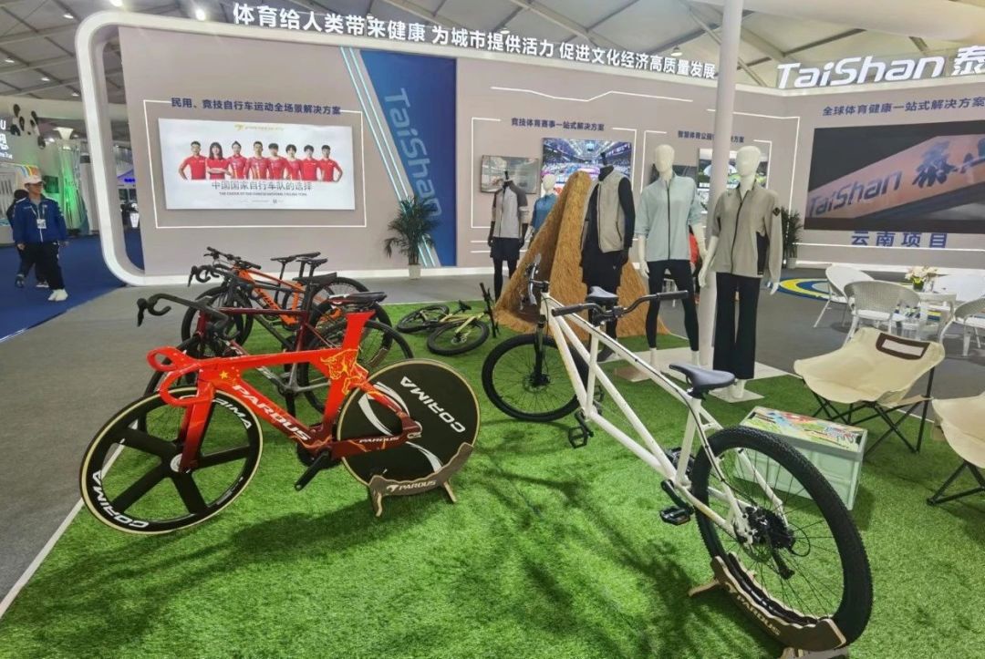 为进一步推动全民健身,促进全民健康,泰山体育积极拓展全球自行车民用、竞技市场,满足各人群骑行需求,提供全场景解决方案,让自行车运动深入融入大众生活,释放运动热情。展会现场观众实地感受泰山体育的自行车高端产品,为其带来“骑行不止赛场,运动赋能生活”的沉浸式体验。