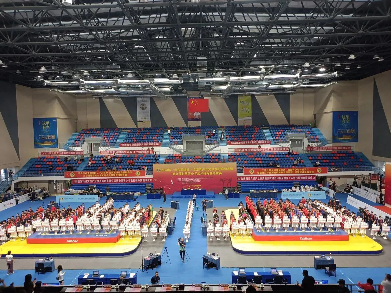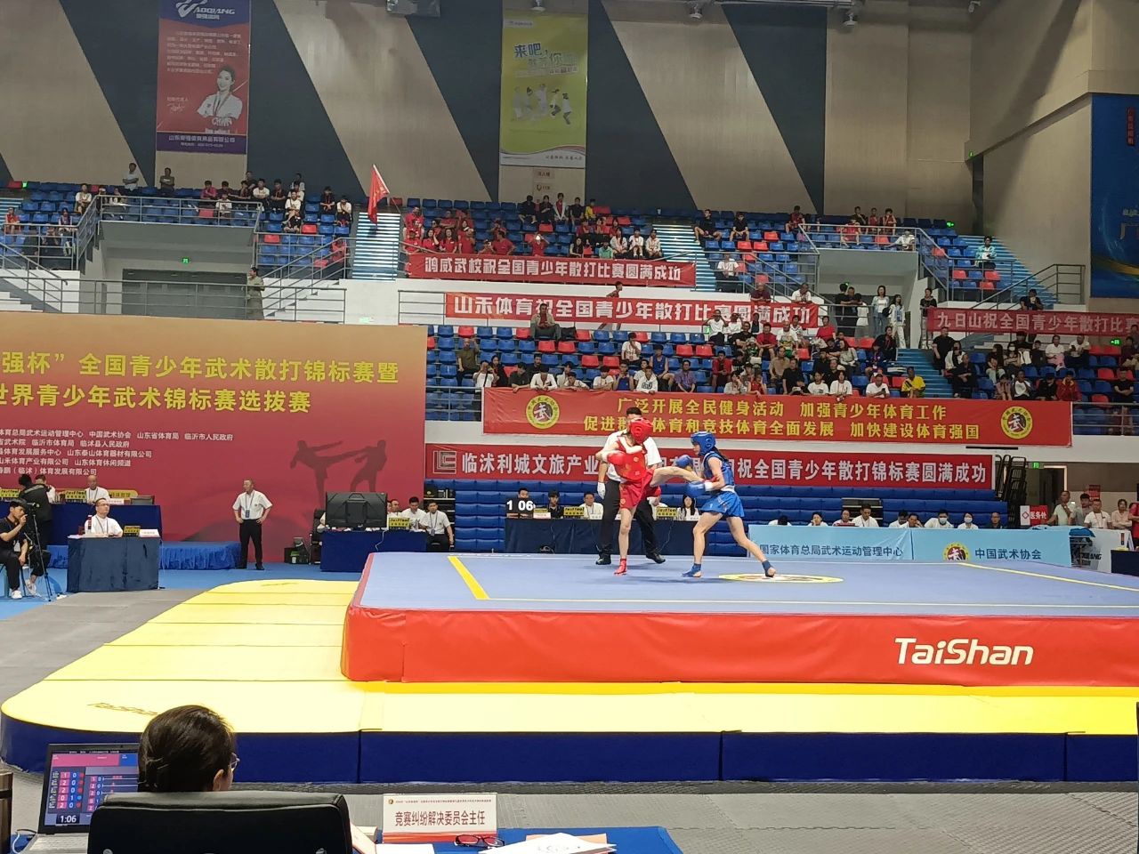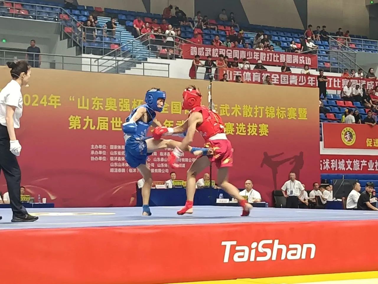 6月14日,2024年全国青少年武术散打锦标赛暨第九届世界青少年武术锦标赛选拔赛,在山东省临沂临沭开赛,泰山体育是本次大赛的器材供应商与服务商。本次赛事是全国最高水平的青少年武术散打比赛,也是山东近年来承办的规模最大的武术赛事,共将产生20枚金牌,共有来自全国42支队伍的800余名运动员前来角逐。其中,中国香港和中国澳门队是首次参赛。