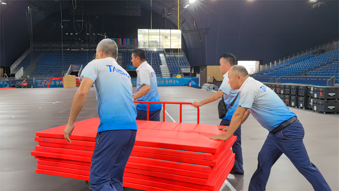 泰山体育的专业安装团队以满腔热情和高效执行力,致力于柔道与摔跤比赛场馆的设备安装工作。在本届奥运会上,泰山体育不仅提供了高品质的产品,还特别派遣了核心工程师团队。这支团队凭借多年的国内外大型赛事服务经验,确保每一环节的安装工作均满足国际顶级赛事的严格标准。