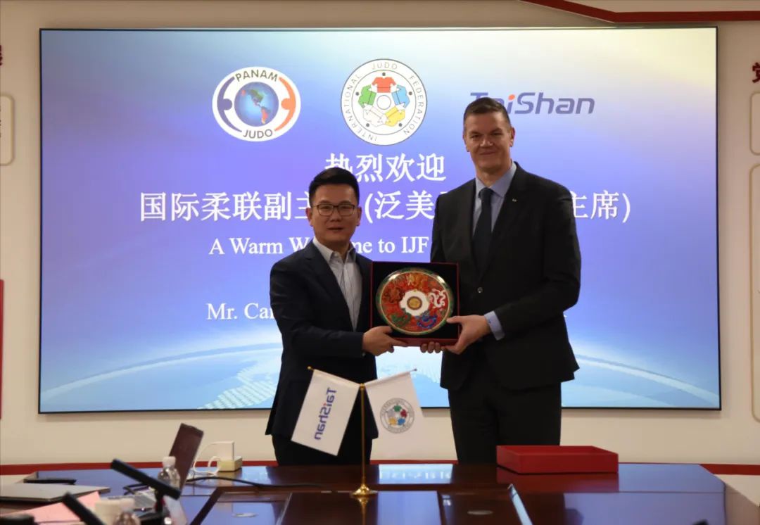 2月7日,国际柔道联合会副主席、泛美柔道协会主席卡洛斯·艾力克莅临泰山体育产业集团参观交流,集团董事长卞青峰陪同。此次访问不仅是对泰山体育长期服务国际柔道领域的肯定,更是双方深化合作、共谋未来发展的重要里程碑。